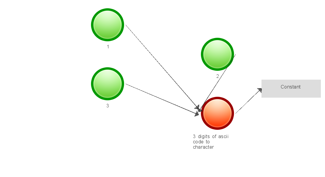 * 3 digits of ascii code into character: connect 3 digits to one ascii number and change it to character